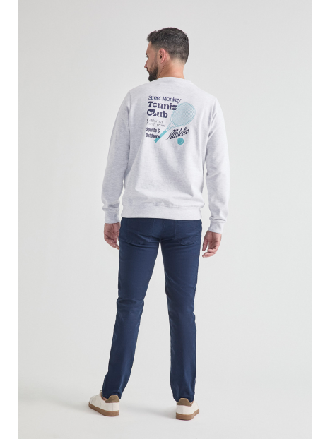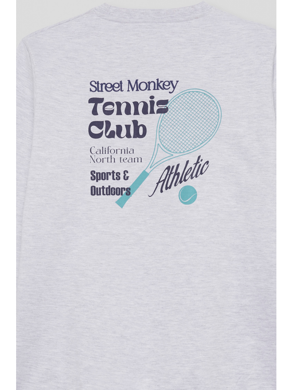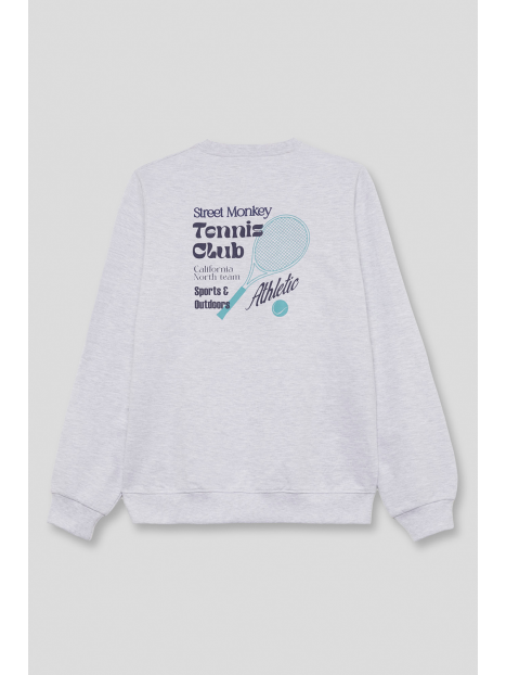 Sudadera de manga larga disponible en tallas de la S a la 4XL. Diseño con pequeño detalle frontal y estampado grande en la espalda inspirado en el tenis, con cuello redondo y acabados en canalé que aportan un estilo deportivo y actual. Una prenda cómoda y versátil para el día a día.
