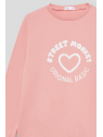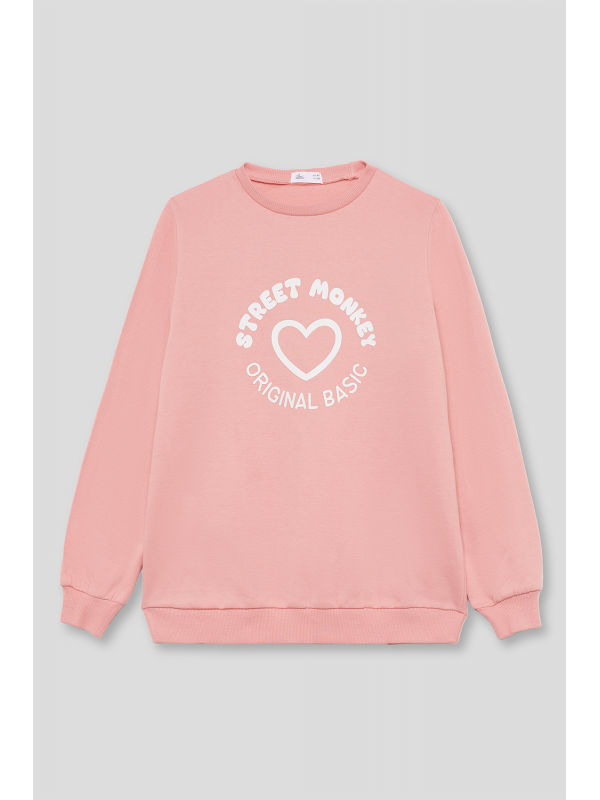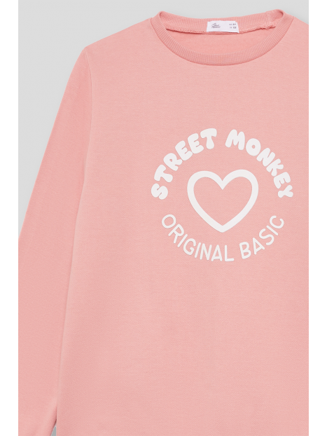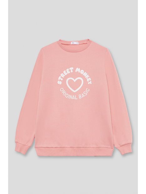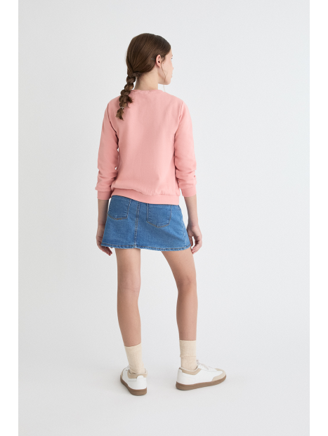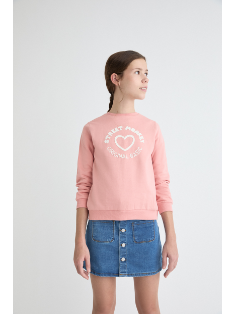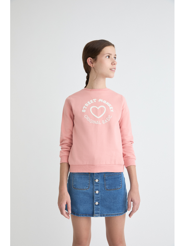 Sudadera para niña de 2 a 16 años disponible en varios colores: gris melange, eucalipto y maquillaje. Esta sudadera combina estilo y comodidad, ideal para mantener a tu pequeña abrigada y a la moda durante los días más frescos.