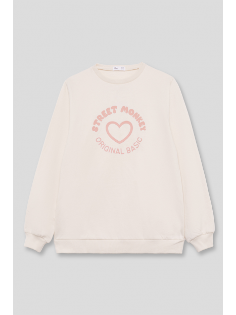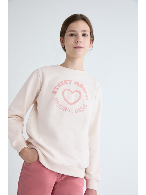 Sudadera para niña de 2 a 16 años disponible en varios colores: gris melange, eucalipto y maquillaje. Esta sudadera combina estilo y comodidad, ideal para mantener a tu pequeña abrigada y a la moda durante los días más frescos.