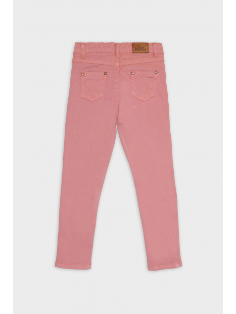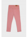 Pantalón vaquero con cinturilla interior ajustable y cierre botón frontal. Bolsillos tipo plastrón en espalda.