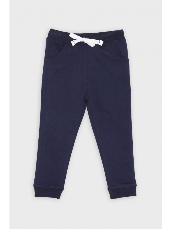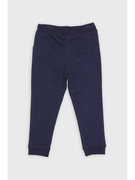 Pantalón tipo jogging con cinturilla elástica y aplique cordón frontal. Bolsillos delanteros.