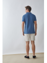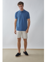 Bermuda estilo chino con cinco bolsillos. Cierre central mediante botón y cremallera, fornituras personalizadas y etiqueta en efecto piel en la cinturilla.