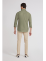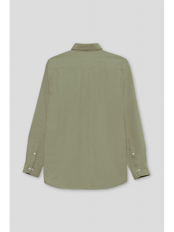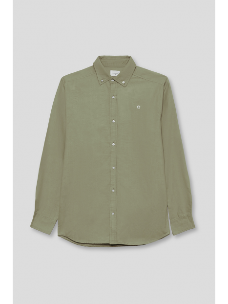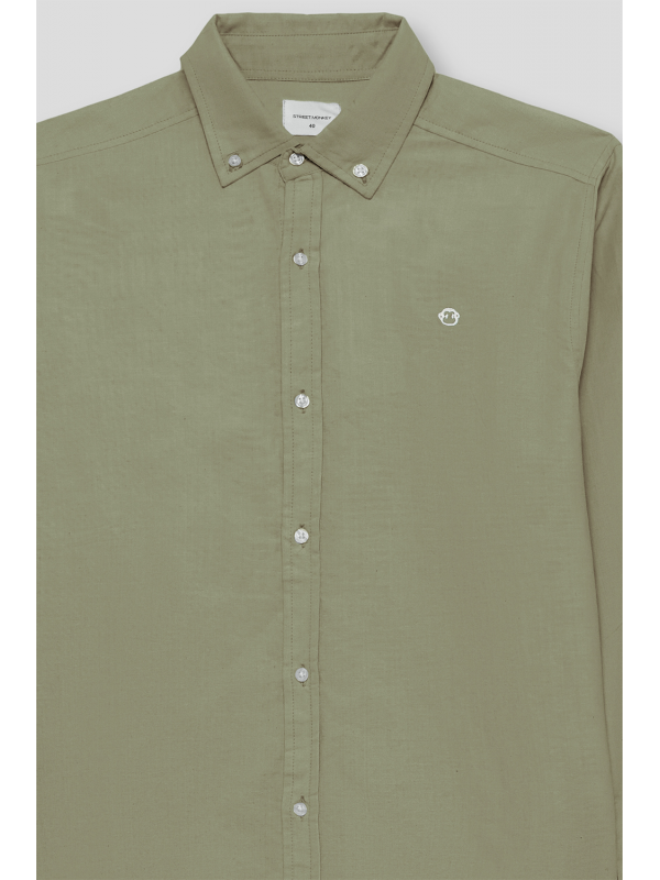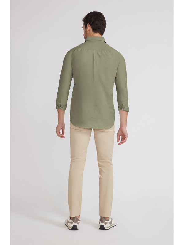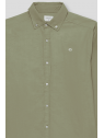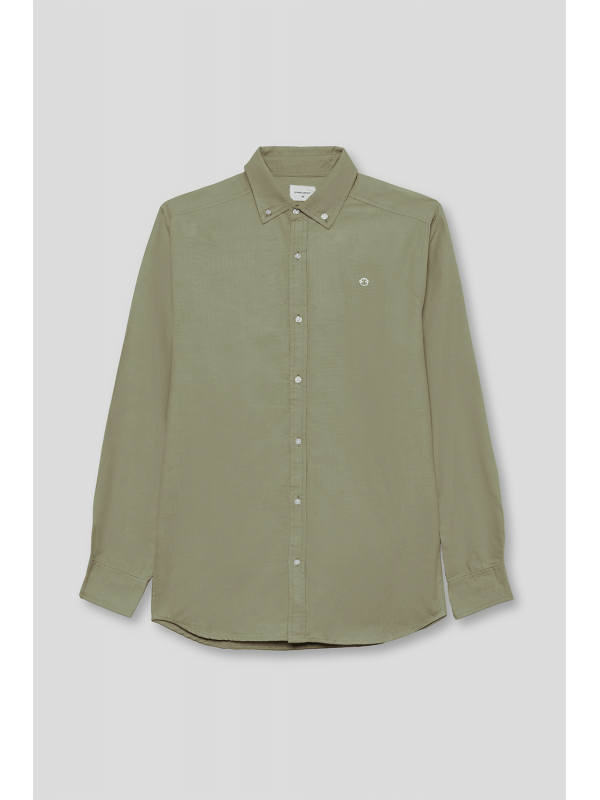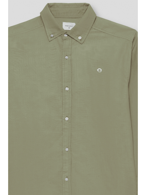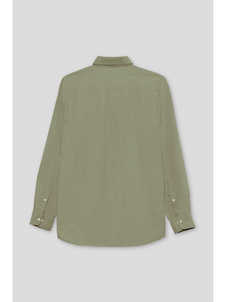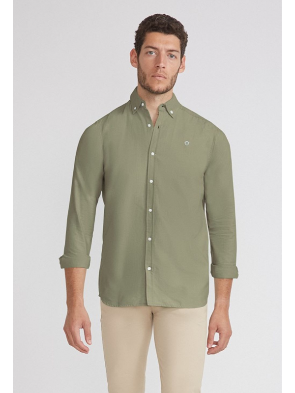 Camisa de manga larga para hombre en color azul claro. Diseño liso con cuello button down, cierre frontal de botones y tejido ligero de tacto suave.