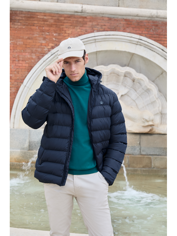 Chaquetón acolchado disponible en colores marino y verde, en tallas para hombre de S a XXL.