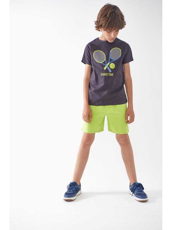 Pantalón corto en color lima con elástico en la cintura con cordón para un mejor ajuste y bolsillos delanteros.