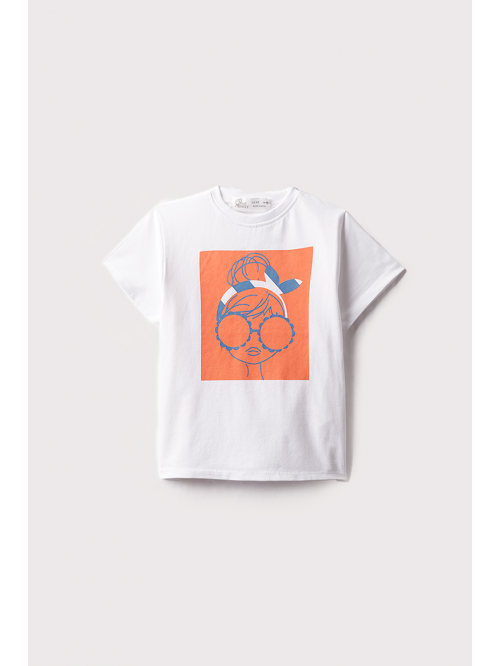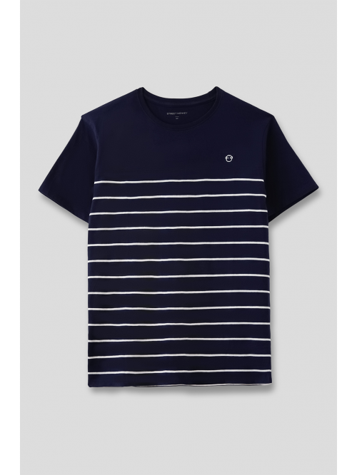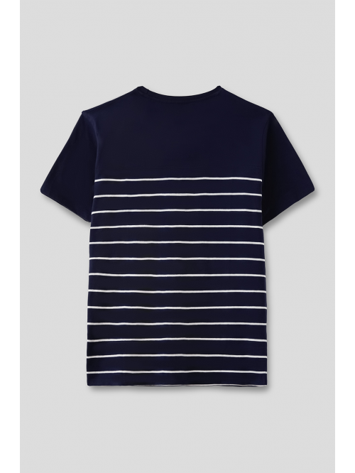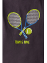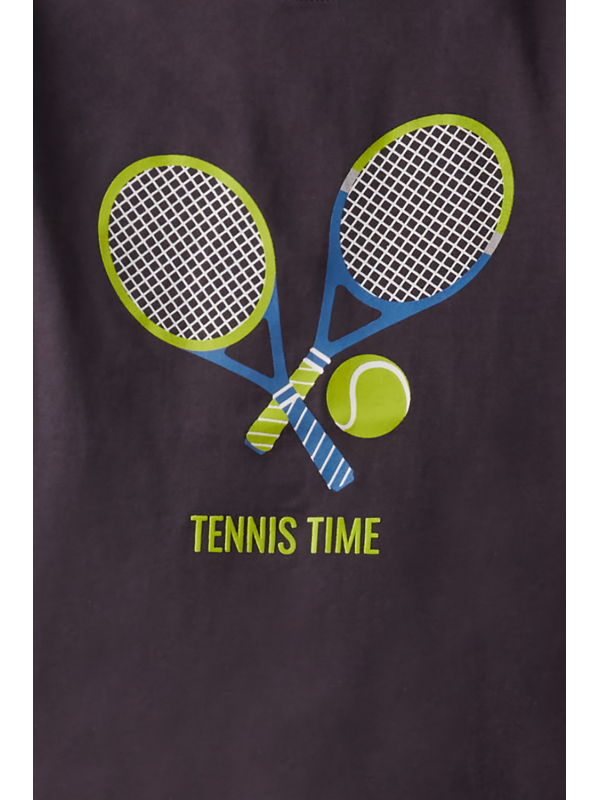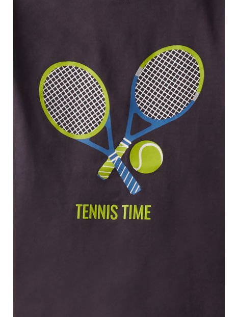 Camiseta de manga corta con cuello redondo en color gris oscuro con aplique en el centro.