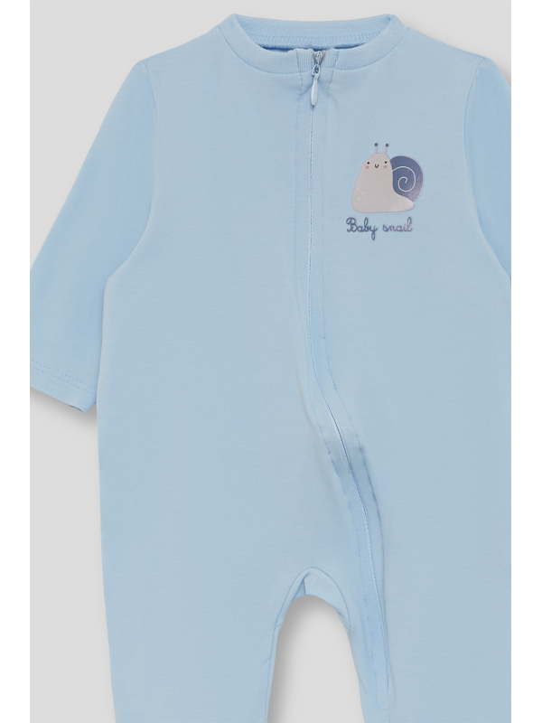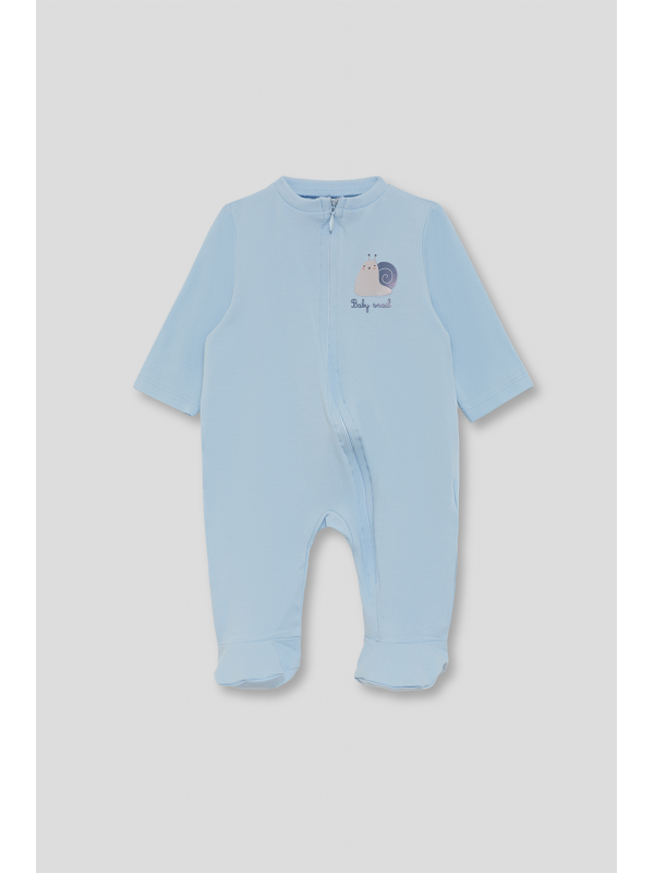 Pelele largo para bebé de 1 a 24 meses. En color celeste con estampado delantero de caracol y detalle “Baby snail”. Diseño de manga larga y pies cubiertos, con práctico cierre de cremallera frontal para mayor comodidad.