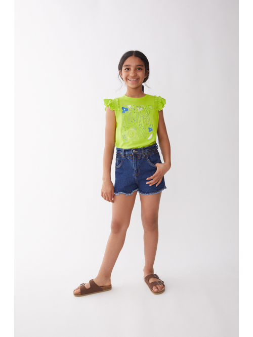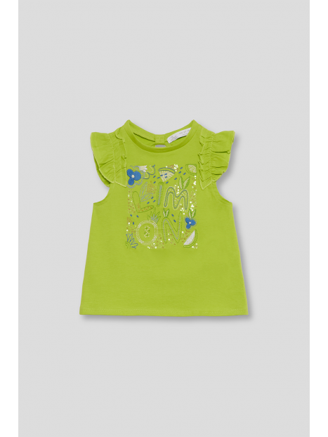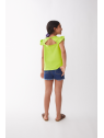 Camiseta verde lima con volantes y detalles brillantes para niña de 2 a 16 años.