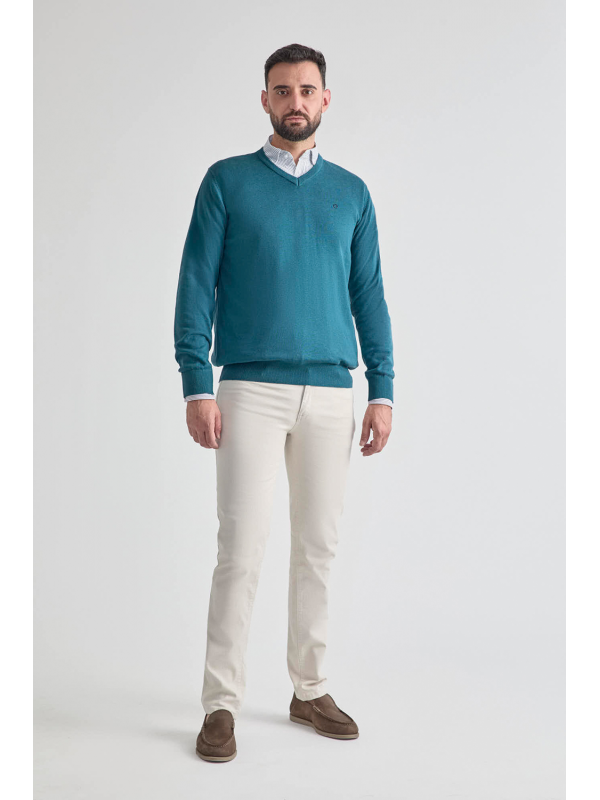 Jersey clásico disponible en varios colores, de la talla S a la XXL. Este suéter es perfecto para combinar con cualquier look gracias a su diseño versátil y elegante. Fabricado con materiales de alta calidad, proporciona comodidad y un ajuste ideal. Su cuello en pico añade un toque formal, mientras que su estilo atemporal lo convierte en una pieza imprescindible para cualquier guardarropa masculino.
