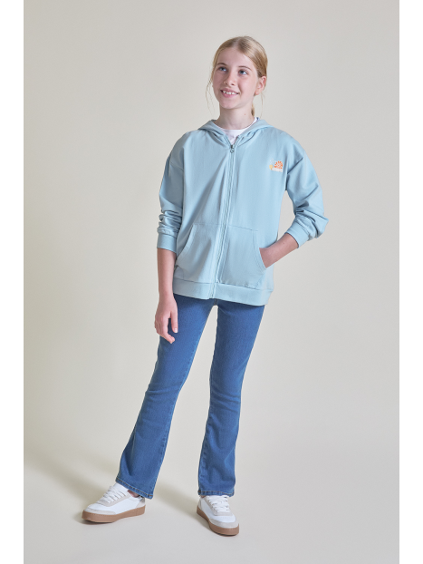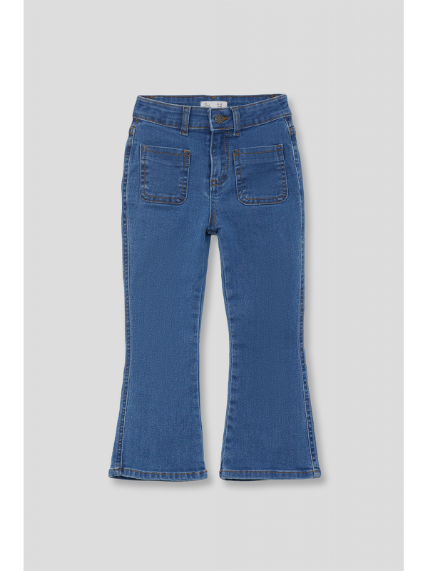 Pantalón vaquero acampanado para niña disponible de la talla 2 a 16 años.