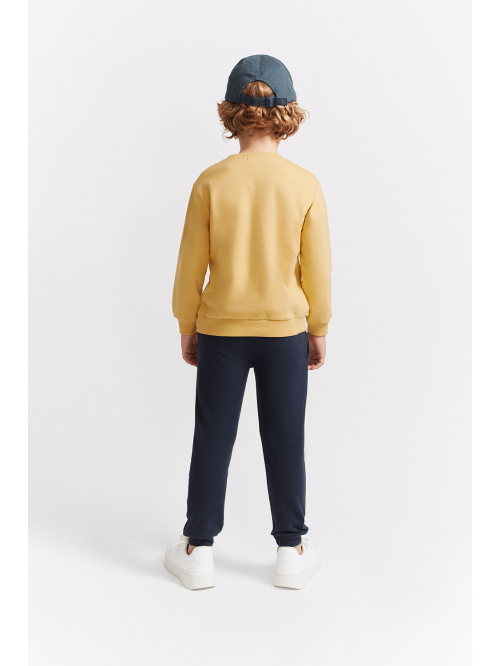 Sudadera para niño de 2 a 16 años disponible en varios colores: azul medio, gris melange, marino y mostaza. Esta sudadera es perfecta para combinar estilo y comodidad en el día a día. Presenta un divertido diseño con el texto "Street Monkey Original Basic" y un simpático mono en el centro, añadiendo un toque de originalidad y diversión al look de cualquier niño.