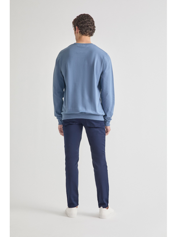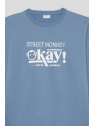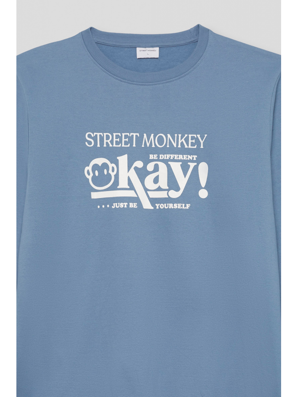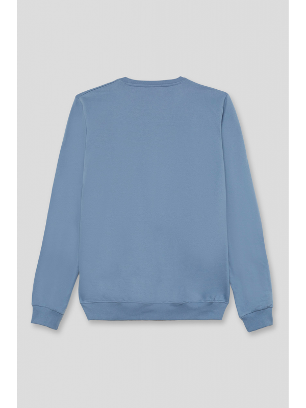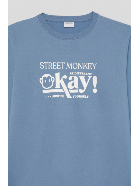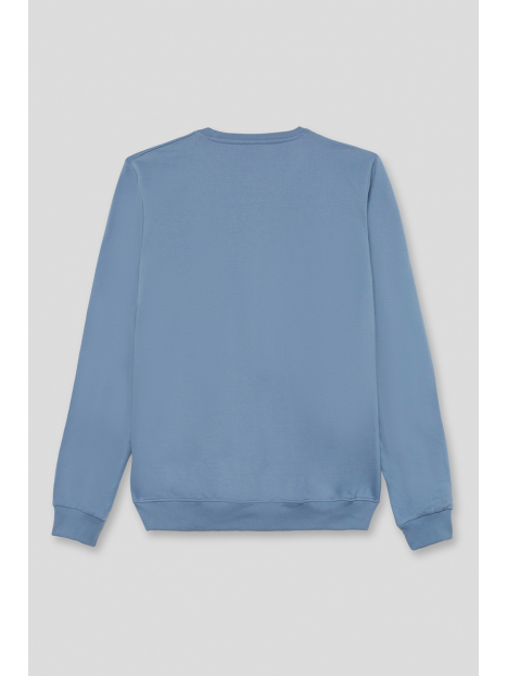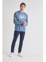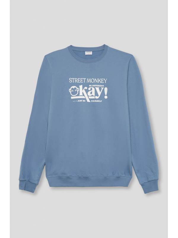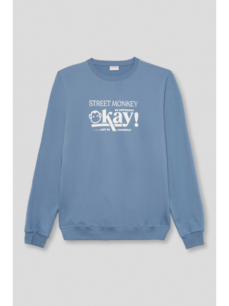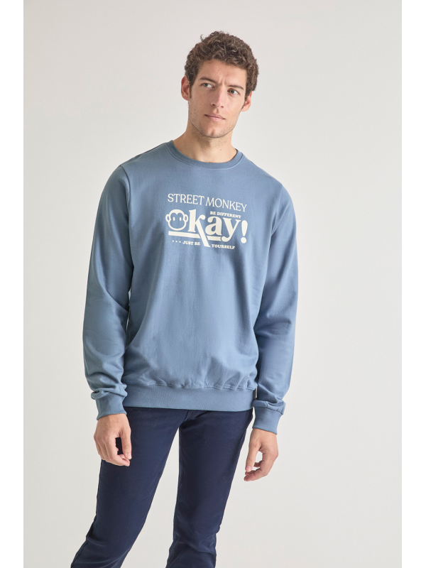 Sudadera marino de manga larga disponible en tallas de la S a la 4XL. Diseño con estampado frontal tipográfico en contraste que aporta un estilo urbano y actual, con cuello redondo y acabados en canalé para un ajuste cómodo. Una prenda versátil y perfecta para el día a día.