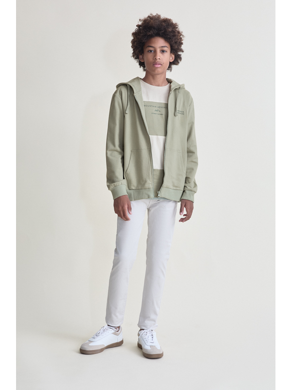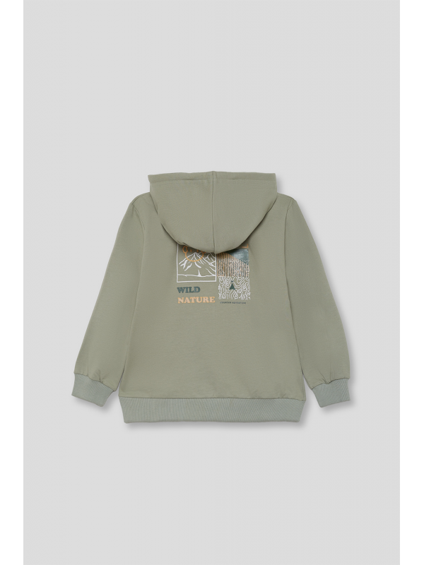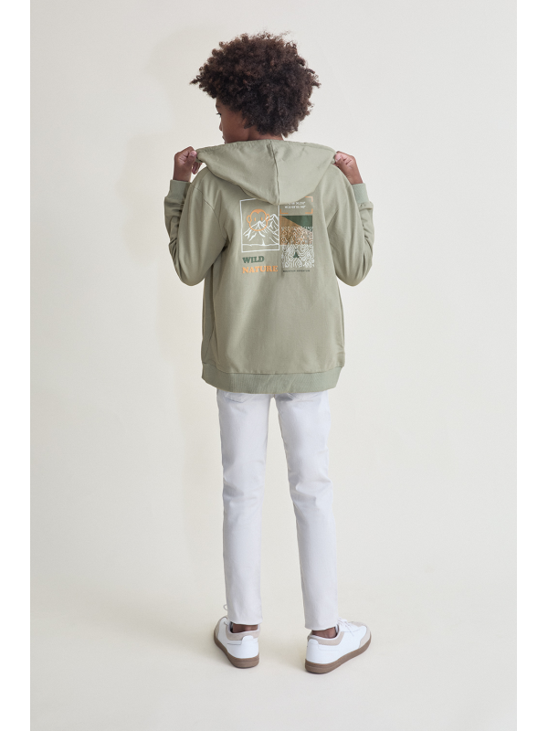 Sudadera con capucha disponible en color verde, en tallas de 2 a 16 años.