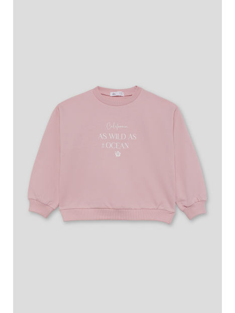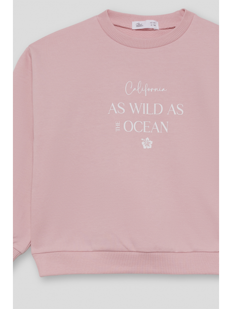 Color rosa con estampado frontal y acabado de canalé en puños y bajo. Suave y cálida, perfecta para el día a día con estilo y comodidad.