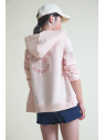 Color rosa claro con cremallera frontal y detalle estampado en el pecho. Suave y cómoda, perfecta para el día a día y combinar en looks casuales.