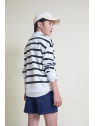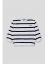 Diseño en blanco y marino con bordado frontal y cuello redondo. Suave y cómoda, perfecta para looks informales de entretiempo.