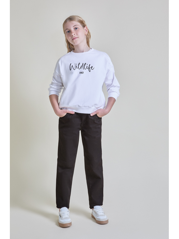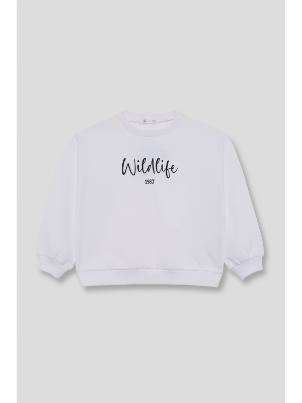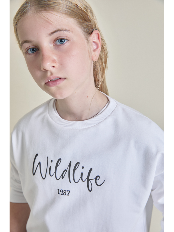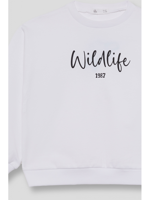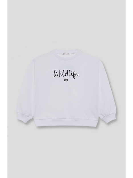 Sudadera para niña de 2 a 16 años en color blanco. Diseño con mensaje “Wildlife 1987” en el pecho y acabado suave, perfecta para un look casual y cómodo.