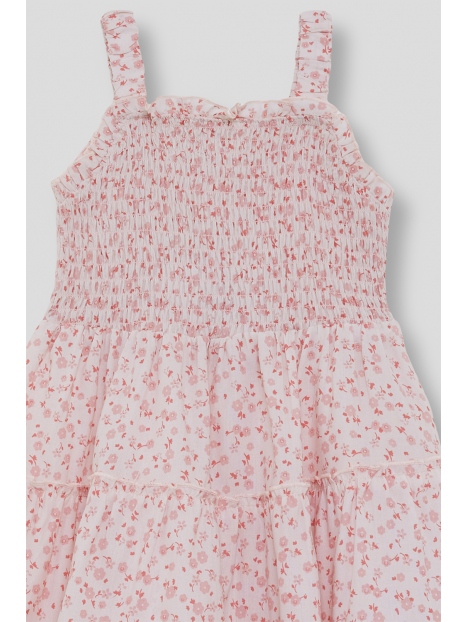 Color rosa con estampado floral y cuerpo fruncido para mejor ajuste. Ligero, fresco y perfecto para días de verano con total comodidad.