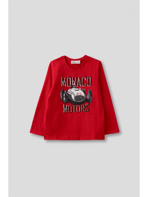 Camiseta para niño de 2 años a 16 años. Camiseta de manga corta en color blanco, con cuello redondo y con aplique frontal. Tejido fresco, cómodo y suave para el verano.