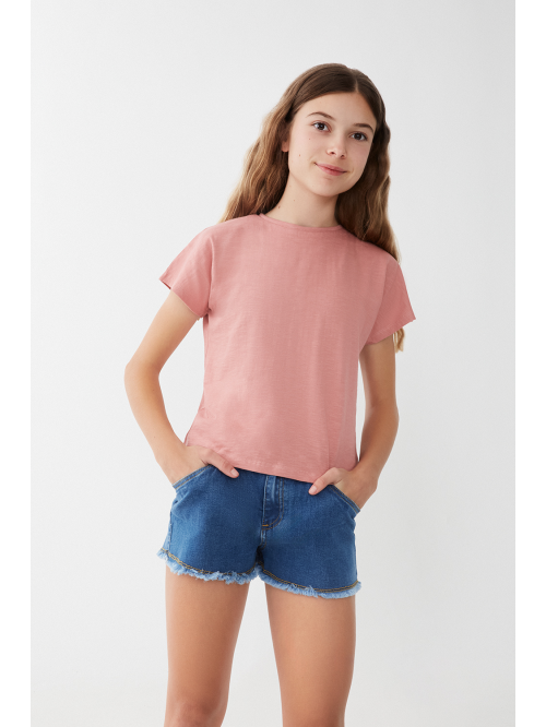 Camiseta con cuello redondo y manga corta.