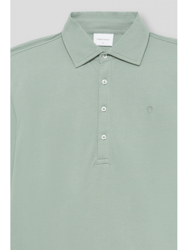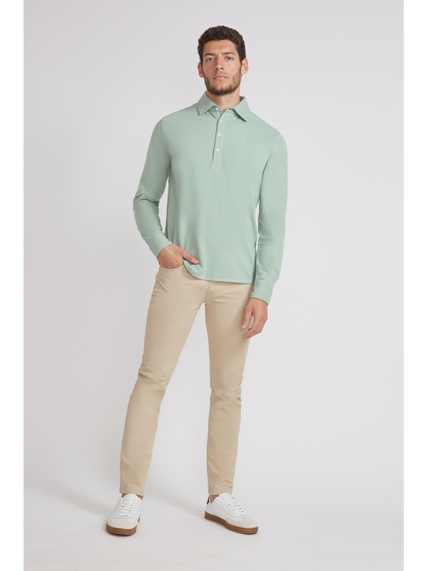 Polo piqué de manga larga en varios colores. Disponible de la talla S a XXL. Confeccionada en algodón con cuello redondo, manga corta y logo de la marca grabado al tono en el frontal. Corte regular fit.