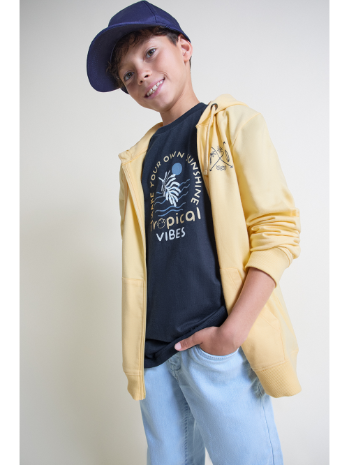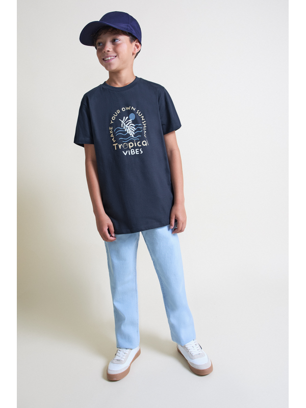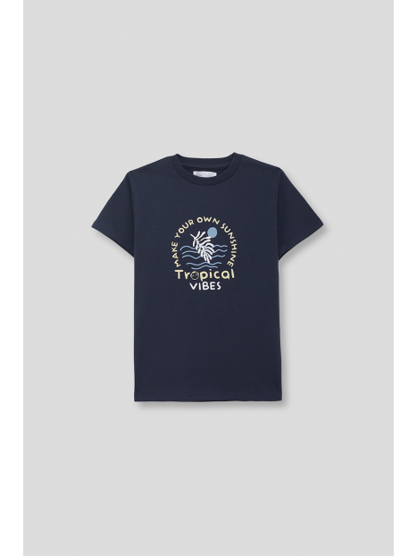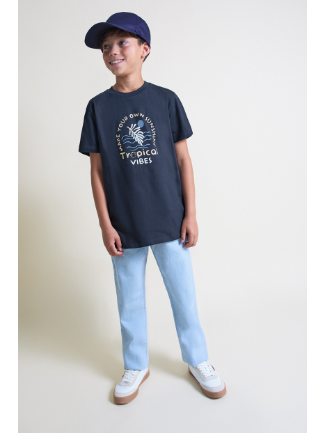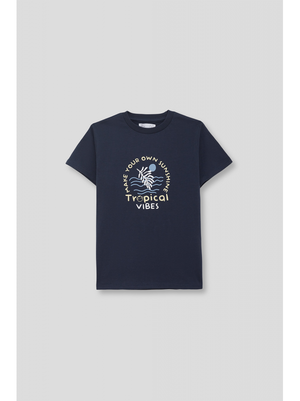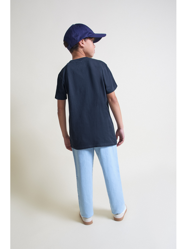 Camiseta de manga corta disponible en color marino, en tallas de 2 a 16 años.