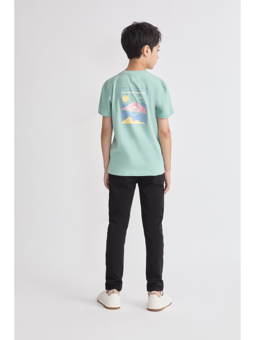 Diseño trasero con estampado “Street Monkey Adventure” en tonos suaves y estilo retro. Confeccionada en algodón 100%, ideal para un look cómodo y actual.