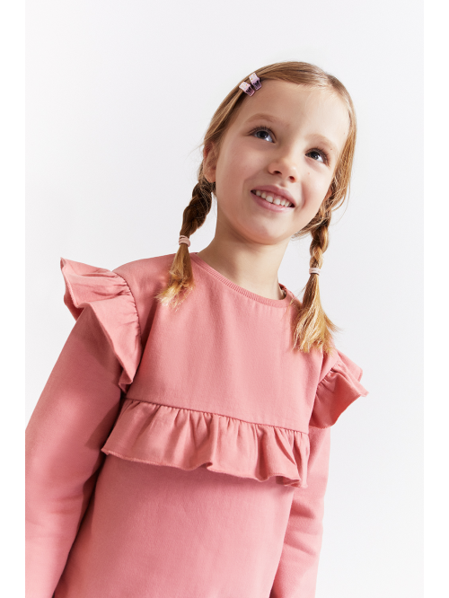 Sudadera en color maquillaje claro con estampado lateral de pequeñas caritas de gato y texto bordado “miau miau” en el pecho. Incluye detalle decorativo de falso bajo en tejido de canalé crudo con acabado ondulado. Cuello redondo, puños y bajo con acabado elástico. El conjunto se completa con leggings lisos a juego, con cinturilla elástica que ofrece un ajuste suave y cómodo. Confeccionado en felpa suave y cálida, perfecta para el invierno.