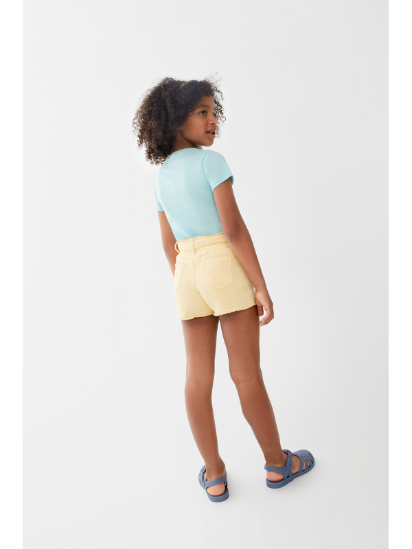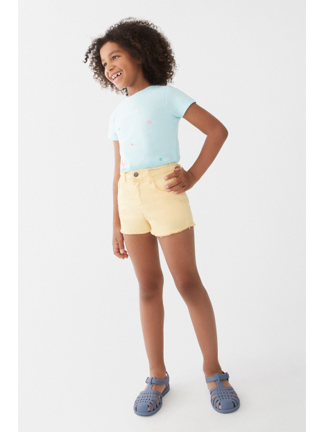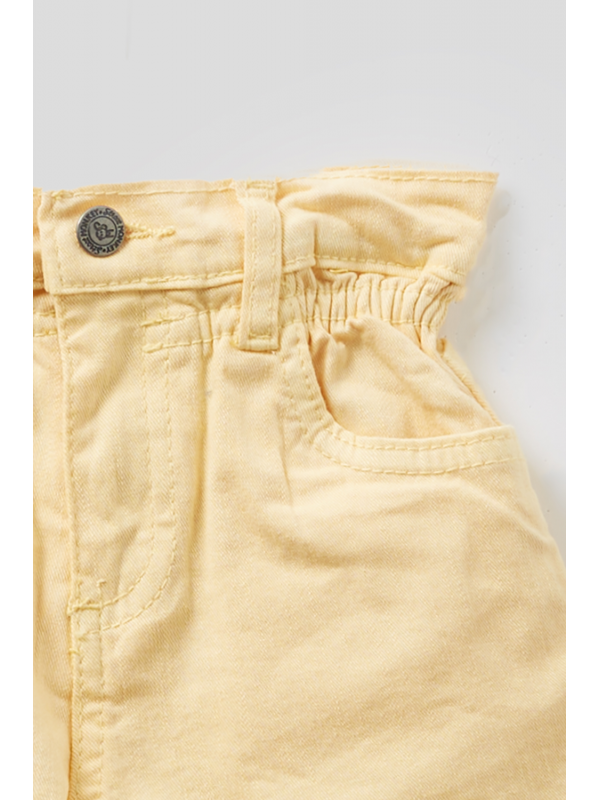 Pantalón con cinturilla interior ajustable y cierre botón frontal. Bolsillos delanteros y de tipo palstrón en espalda. Bajo acabado desflecado.
