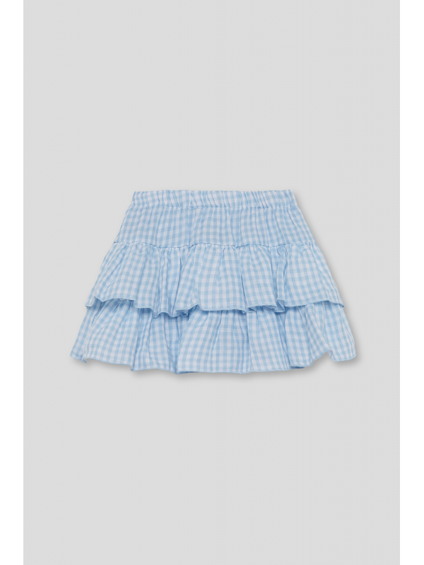 Falda corta para niña de 2 a 16 años en cuadro vichy celeste.