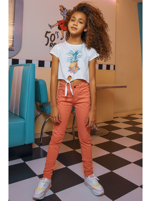 Camiseta para niña de 2 - 16 años. Detalle en la parte inferior de la prenda.