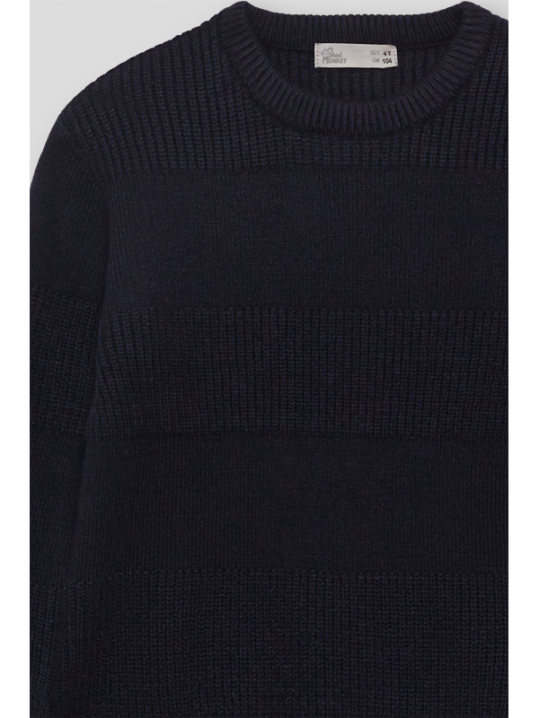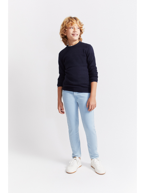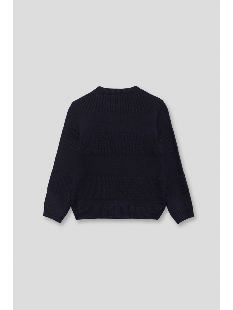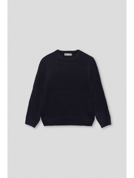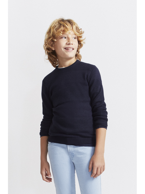 Jersey de punto de talla de 2 a 16 años. Jersey en diseño clásico color narino de manga larga y cuello redondo, confeccionado en punto suave con franjas en texturas alternas que aportan relieve y un toque moderno al look. Acabados canalé en puños, bajo y cuello para un ajuste cómodo. Un básico atemporal y cálido, ideal para los días más fríos.