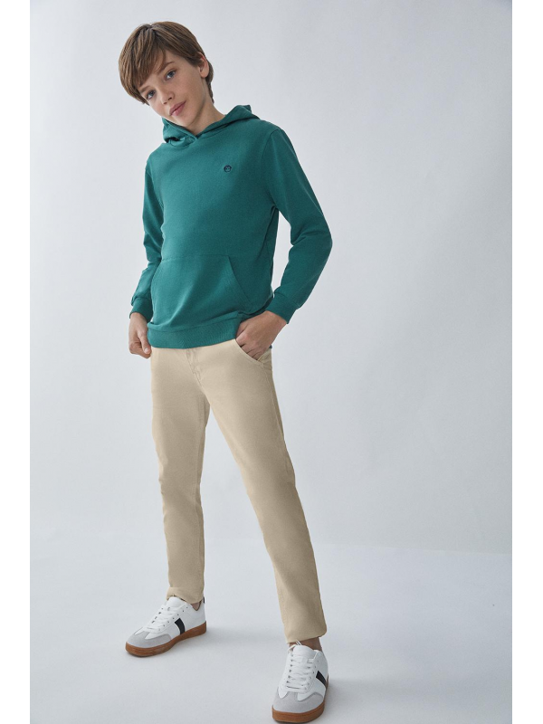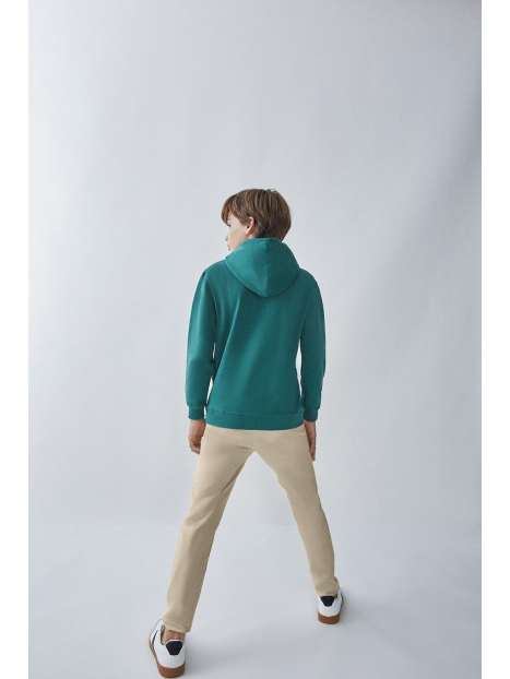 Sudadera confeccionada en algodón con gorro ajustable mediante cordón al tono, bolsillo estilo canguro.