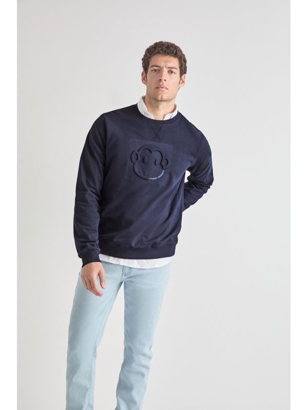 Sudadera de manga larga disponible en tallas de la S a la 4XL. Diseño liso con detalle frontal del logo Street Monkey en relieve que aporta un acabado moderno y distintivo, con cuello redondo y acabados en canalé para mayor comodidad. Una prenda versátil y perfecta para elevar tus looks del día a día.