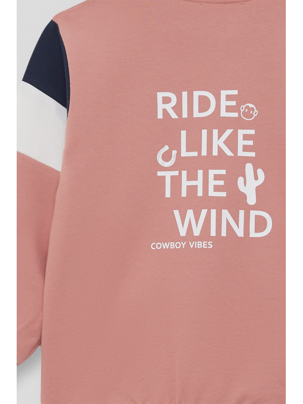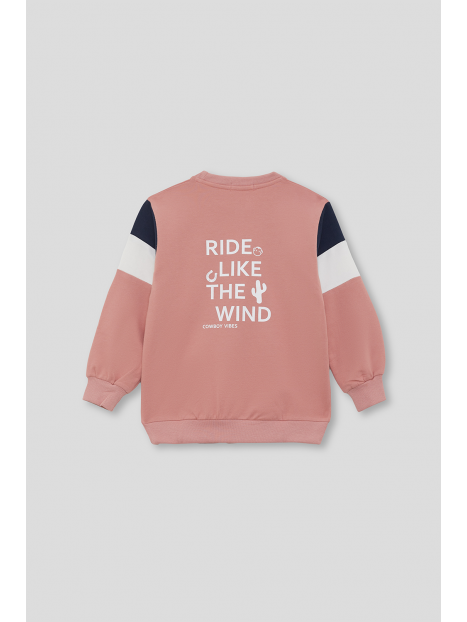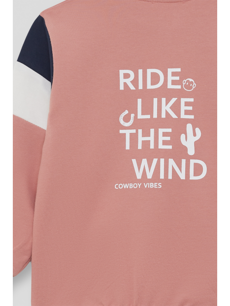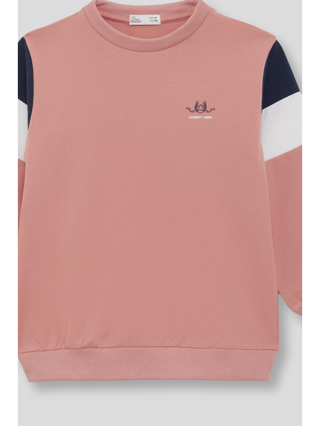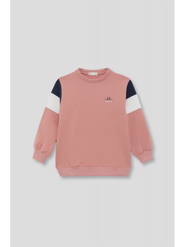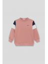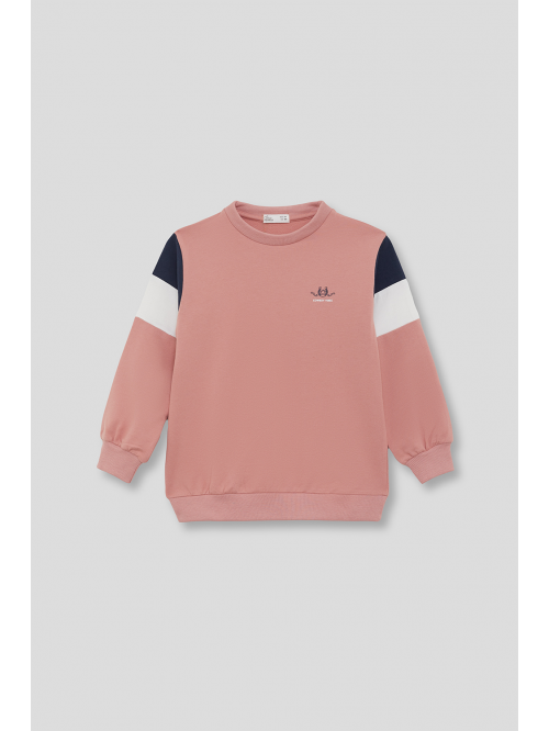 Diseño en color grosella con detalle bordado en el pecho y mangas combinadas en marino y blanco. Puños y bajo elásticos para un ajuste cómodo.