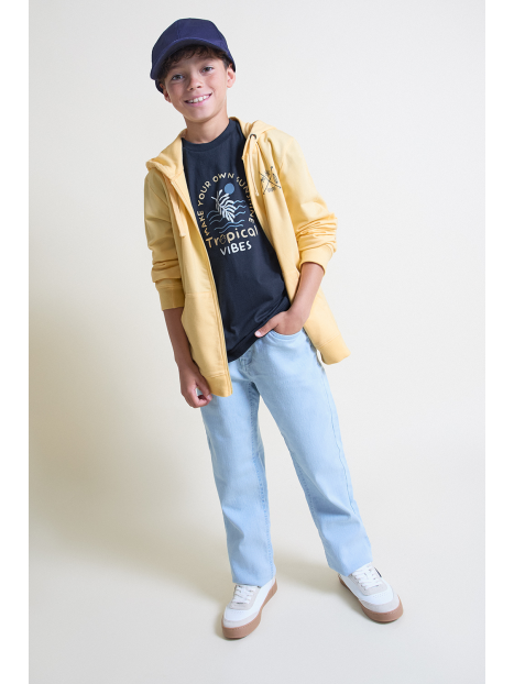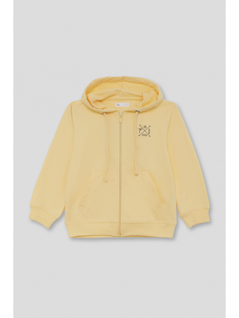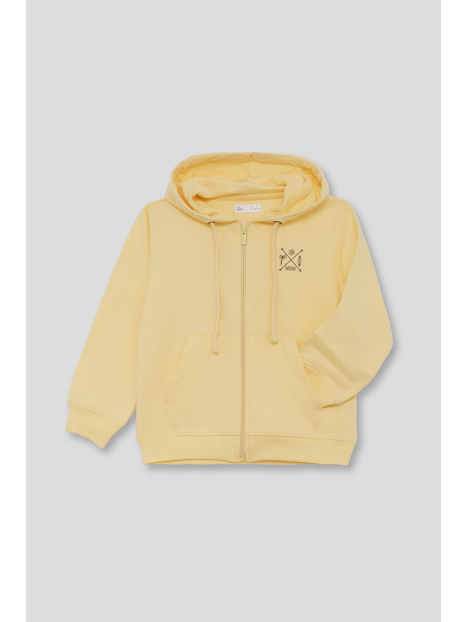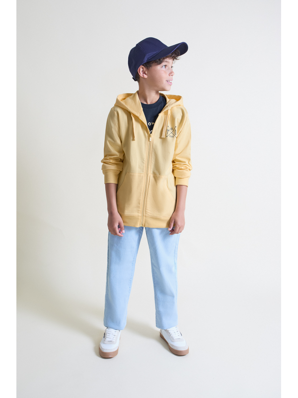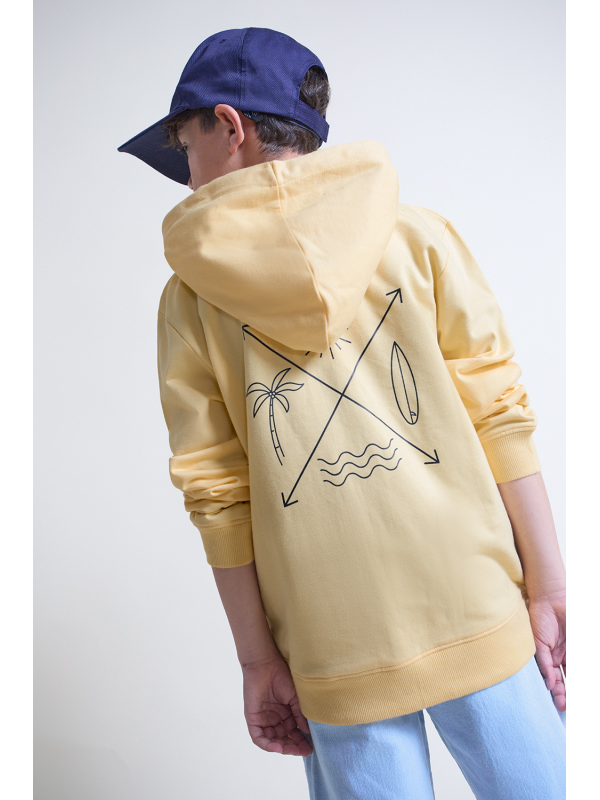 Sudadera con capucha disponible en color amarillo, en tallas de la 2 a la 16 años.