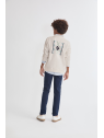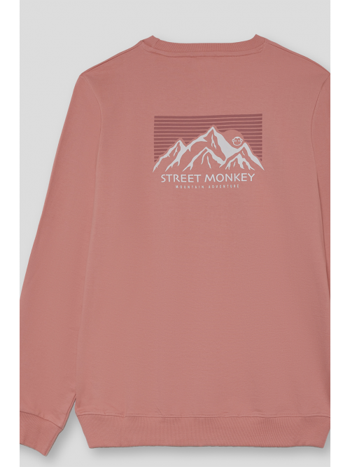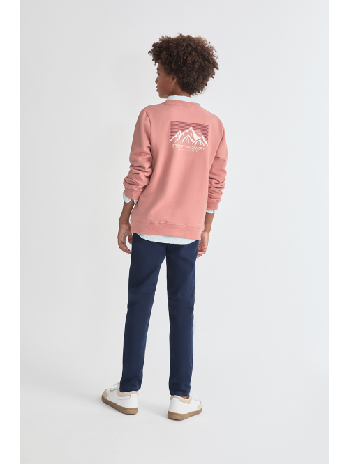 Sudadera para niño disponible en color marino, en tallas de 2 a 16 años. Diseño trasero con estampado geométrico en tonos azules y detalle central del logotipo Street Monkey. Confeccionada en tejido suave con interior afelpado, ideal para un look cómodo y moderno.